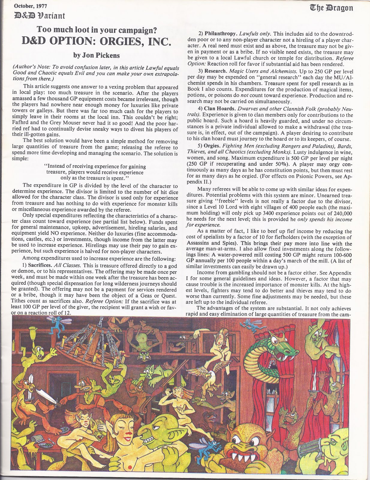 Оргии и походы в бордели также возможны, но если у вас будет полный провал при проверке удачи, нам, возможно, придётся свериться с таблицами Чей-то вони из подземелья1, чтобы узреть, какая судьба вас настигла.